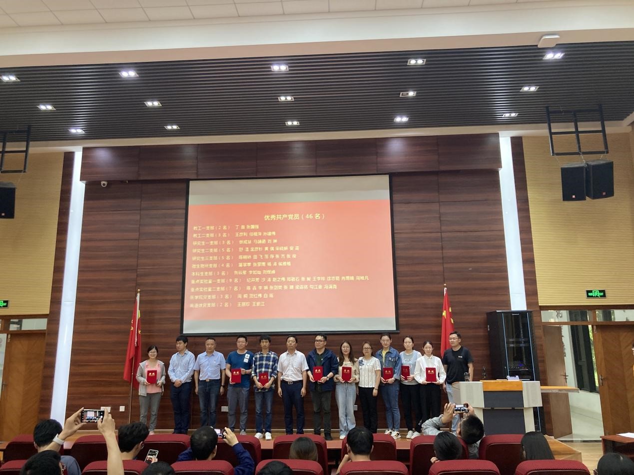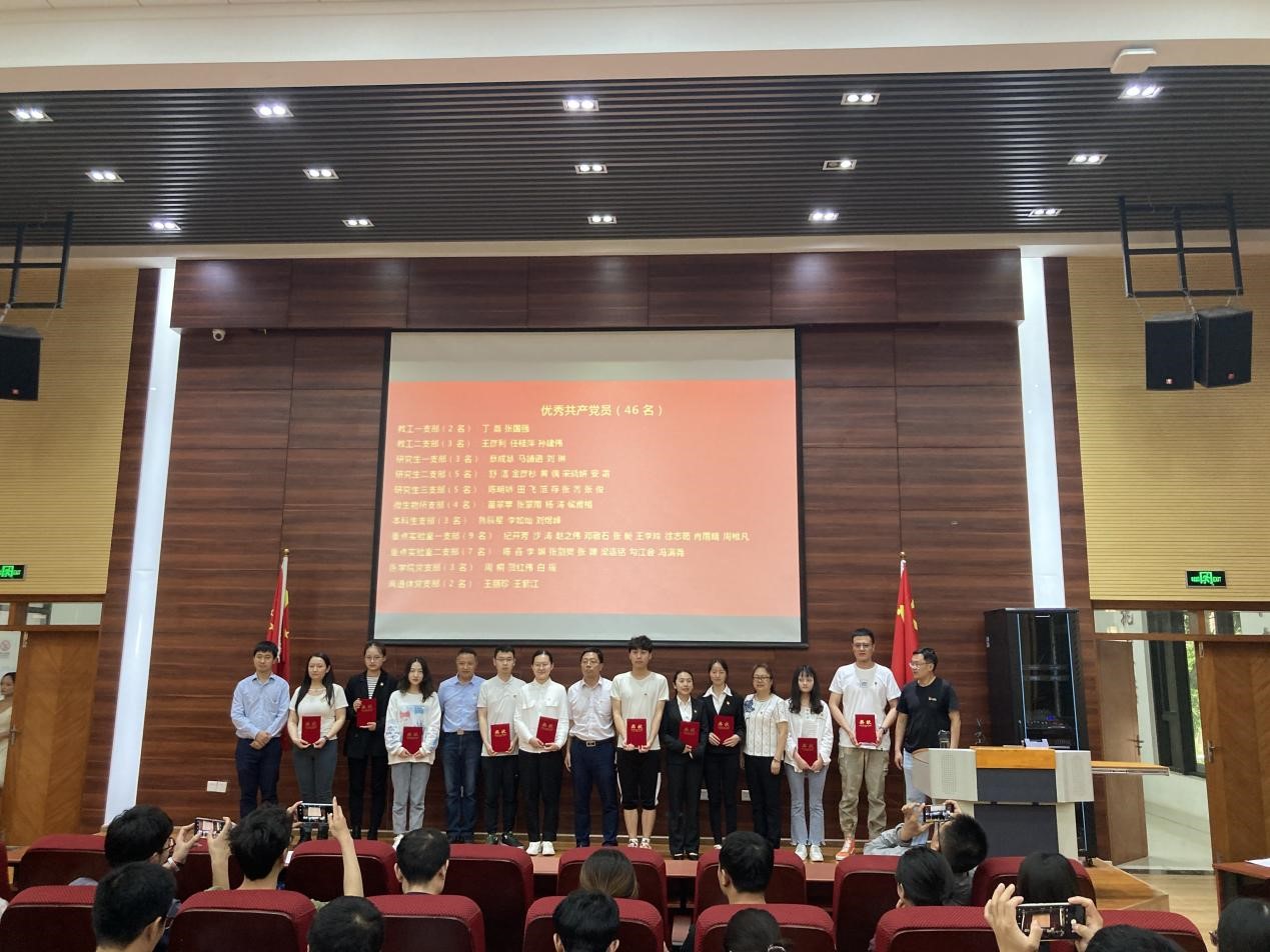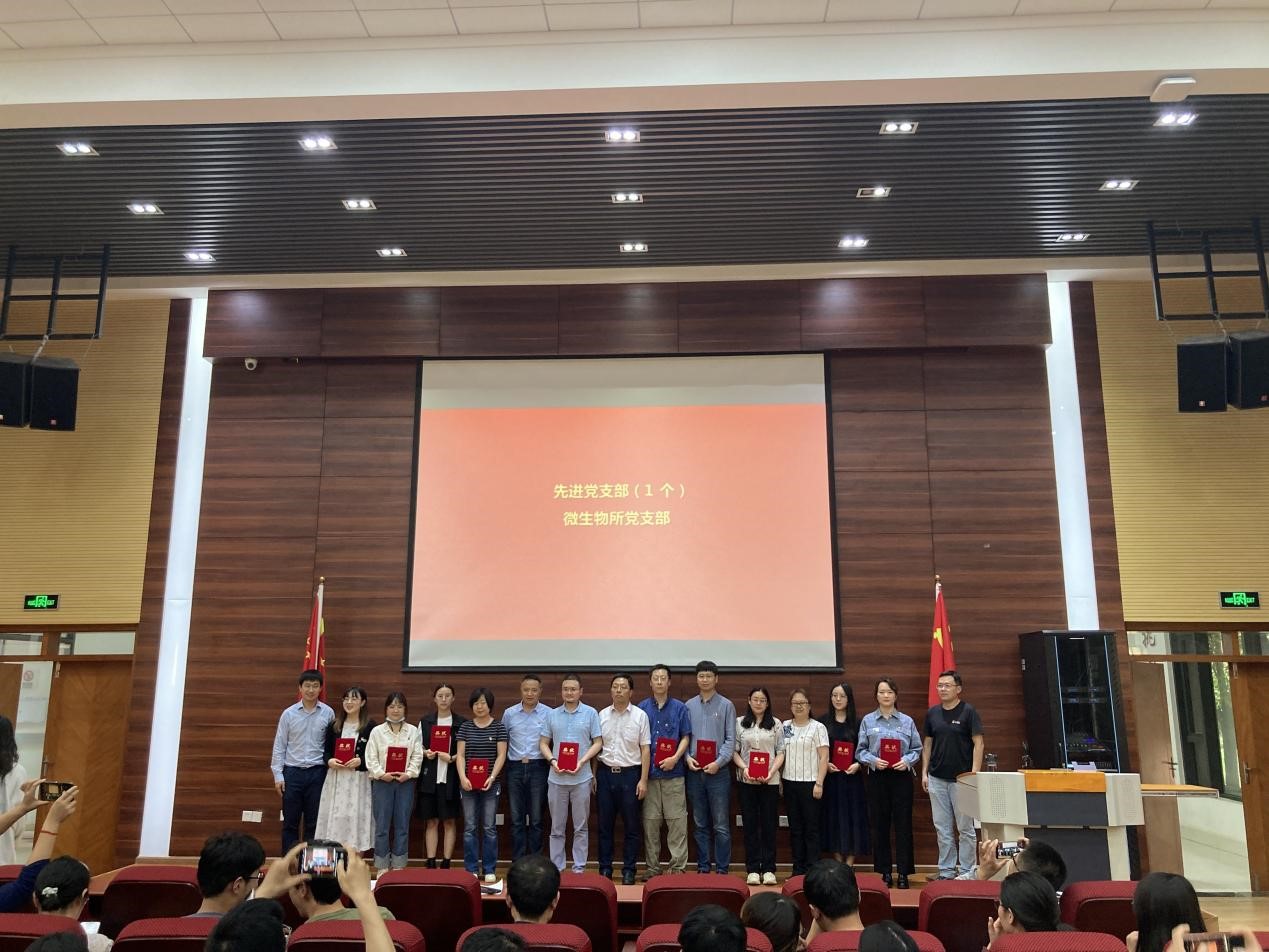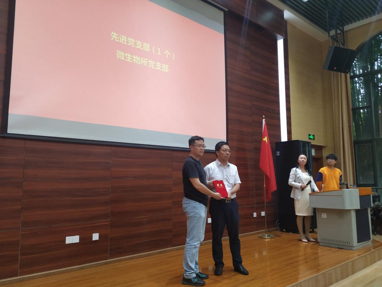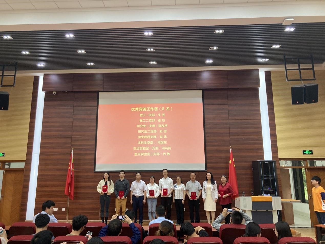 在《没有共产党就没有新中国》的音乐声中,对获得优秀党员、优秀党务工作者和先进党支部的集体和个人进行了颁奖仪式。本次表彰授予微生物所党支部“先进党支部”称号;授予丁磊等 46位同志“优秀共产党员”称号;授予牛芸等8位同志“优秀党务工作者”称号。