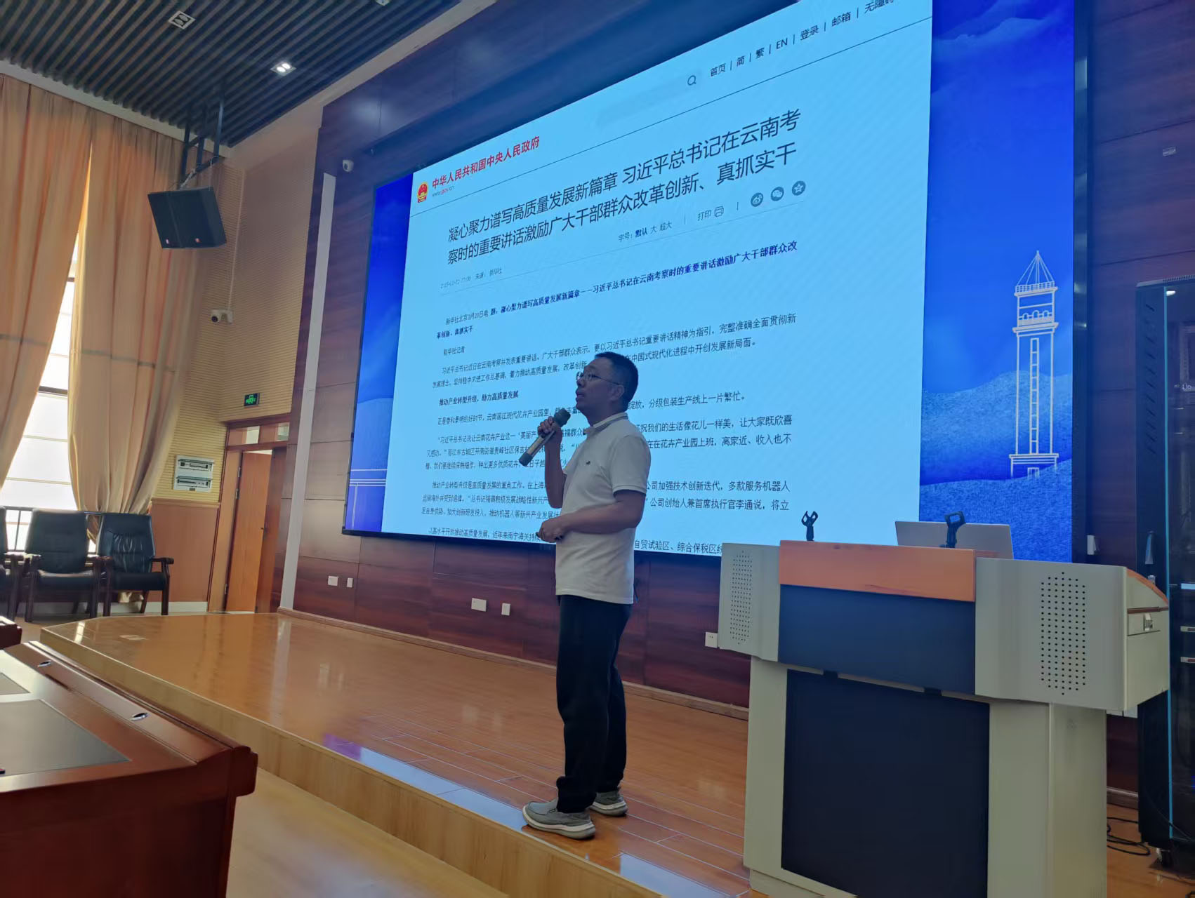 包崇许同志带领全体教职工原文学习习近平总书记考察云南重要讲话重要指示精神。深刻认识总书记考察云南的重大政治意义、时代意义和实践意义,切实增强学习贯彻的思想自觉、政治自觉、行动自觉,以实干实绩坚定拥护“两个确立”、坚决做到“两个维护”。
