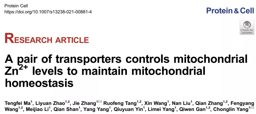 综上,本研究揭示了一对控制Zn2+进出线粒体的转运蛋白,它们协同作用控制线粒体内的Zn2+水平,进而调控线粒体稳态。该研究不仅揭示了线粒体内Zn2+水平对其结构和功能的重要性,而且为进一步的线粒体Zn2+生物学研究提供了重要基础。