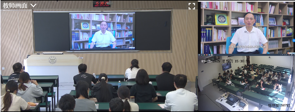 “围坐智慧教室,抬头看见的不止是屏幕,还有远方前辈的目光。”威廉希尔格物楼智慧教室1107弧形灯带亮起,williamhill中国官方网站2023级的同学们迎来《病毒学原理》的“特别一课”—复旦大学袁正宏教授3分钟祝福视频。